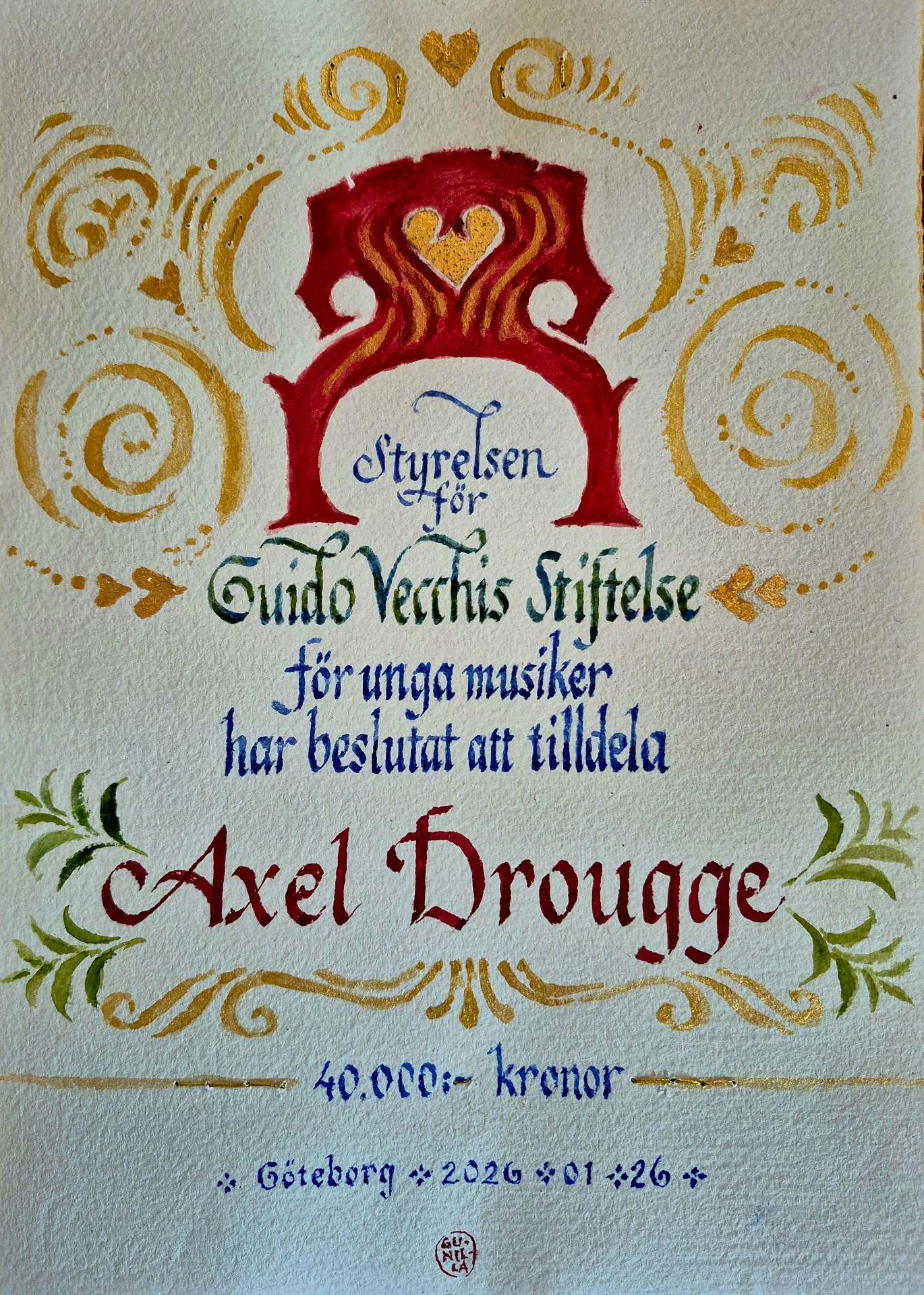 Axel performs on a violin made by Gottfrid Nilsson (Malmö, 1931) and is dedicated to achieve a professional career as a violinist.